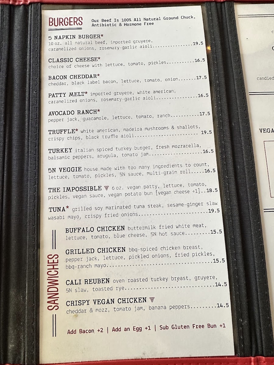 Welcome to 5 Napkin Burger, where the art of burger-making meets a delightful dining experience in the heart of New York City at 2315 Broadway. This vibrant eatery is renowned for its gourmet burgers, crafted with a focus on quality and flavor. Each dish promises a mouthwatering journey, guaranteeing satisfaction with every bite.